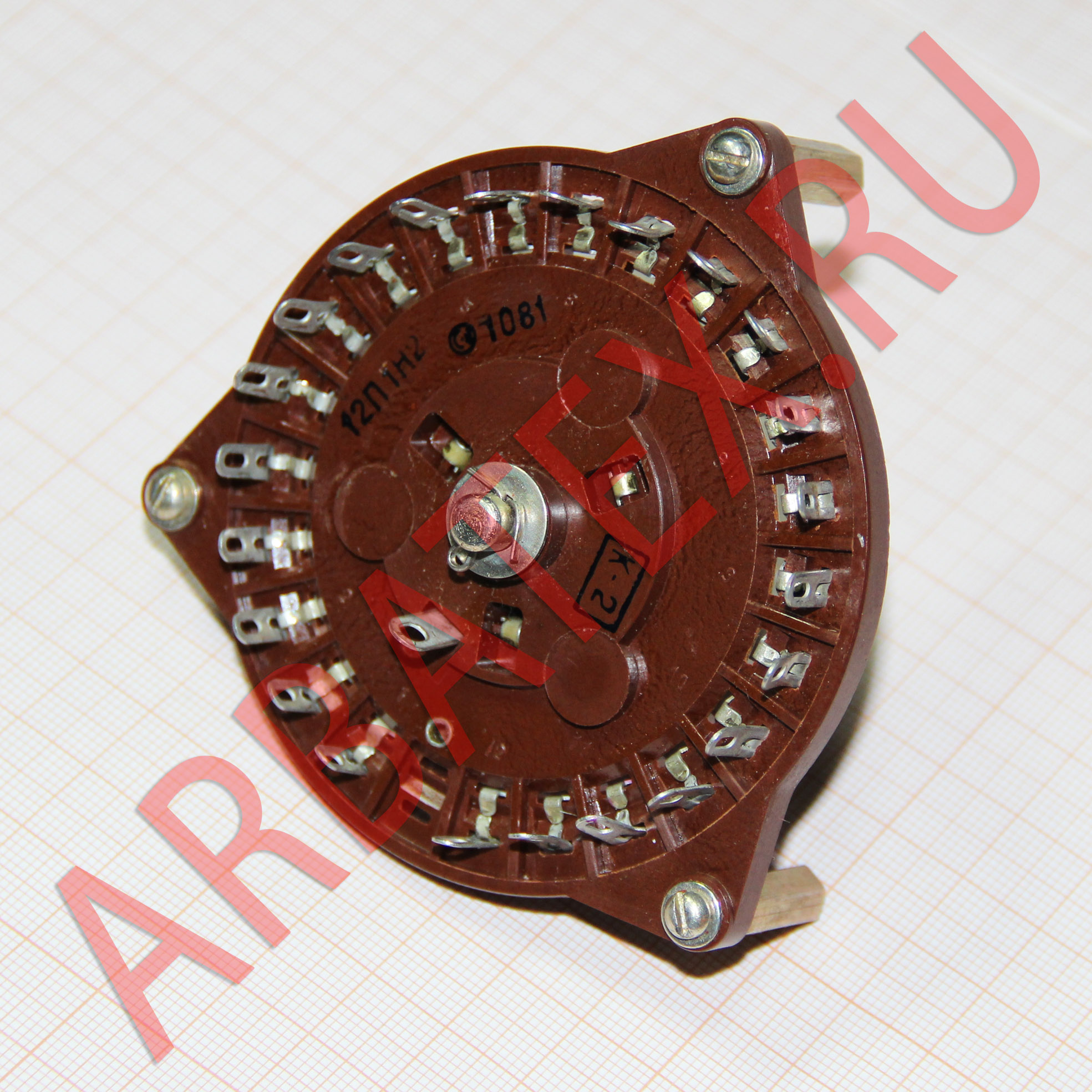 ПЩ-12П1Н2А переключатель щеточный применяется для коммутации электрических  цепей постоянного и переменного тока в радиоэлектронной аппаратуре. Климатическое исполнение В, УХЛ.