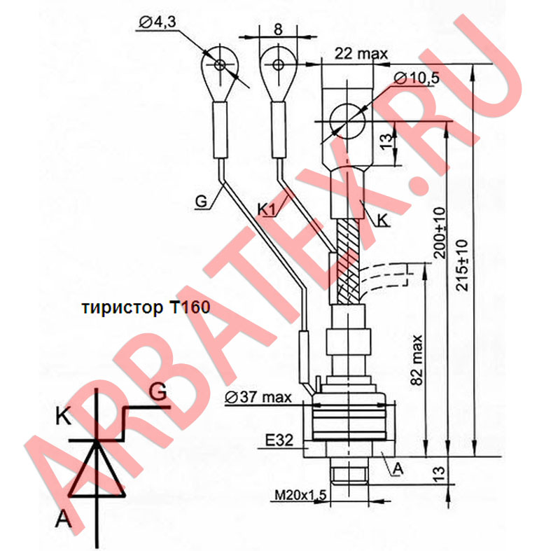 Т160-9 - низкочастотный тиристор штыревого исполнения.